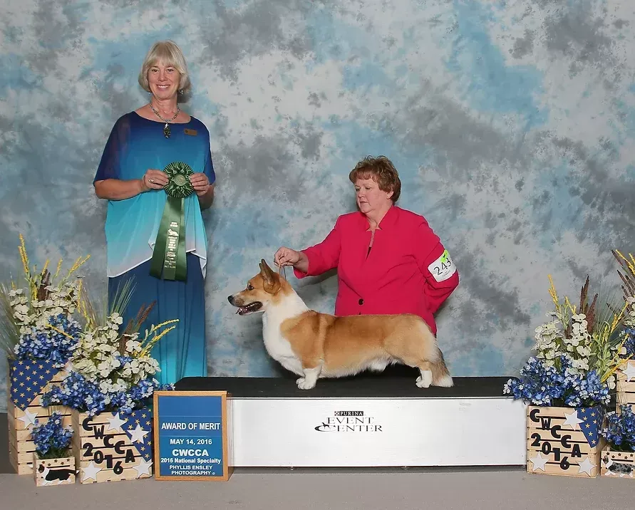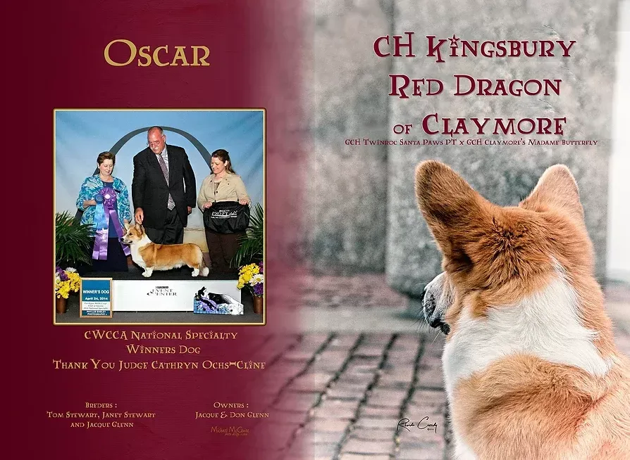 Sired by the incredibly influential stud dog, Dickens, out of the beautiful Harry daughter Cho Cho, Oscar fulfilled his early promise in the show ring going winners dog at the CWCCA national from the 6 to 9 puppy class under Cathy Ochs-Cline in 2014. He later won the prestigious Megan competition and received awards of merit at several nationals. He was a specialty and multiple group winner as well as a RBIS winner.